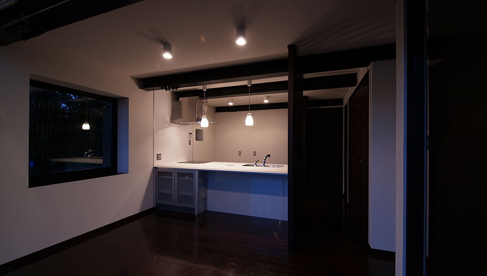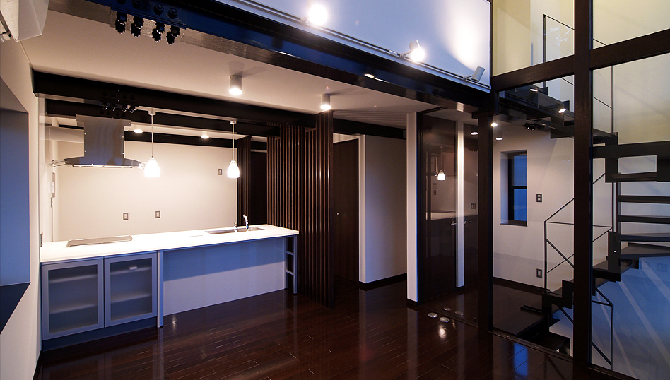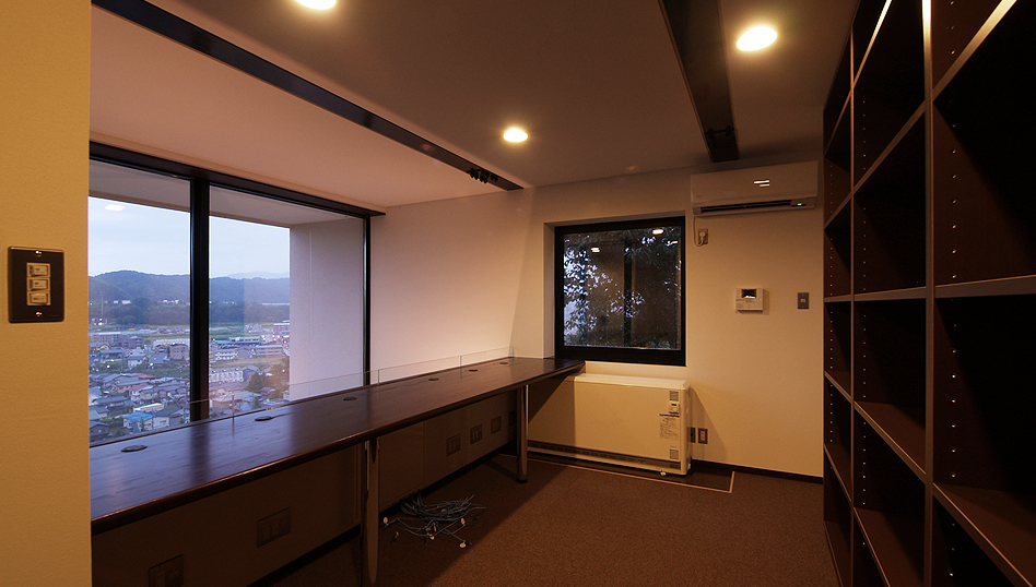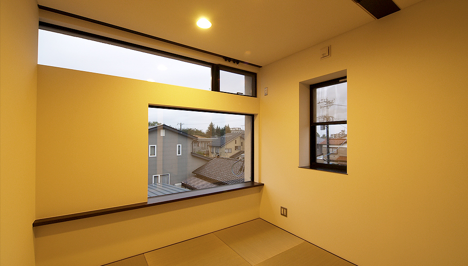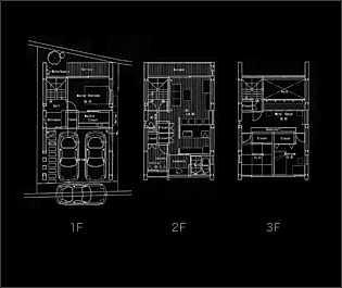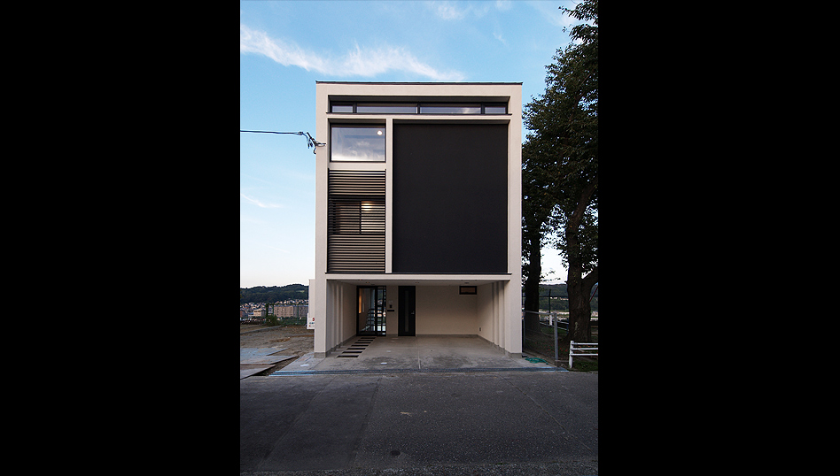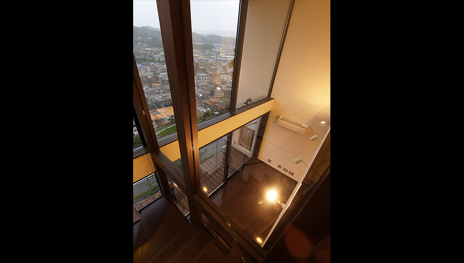 崖地に建つこの住宅は、どの階からも眺めのいい景色を楽しむことができるように 崖側を全て(全階、全幅)透明ガラスの窓にしました。 1階寝室、玄関、2階LDK、3階ワークスペースからは障害物のない眺めを楽しむことができます。