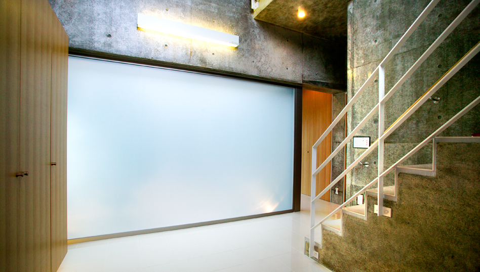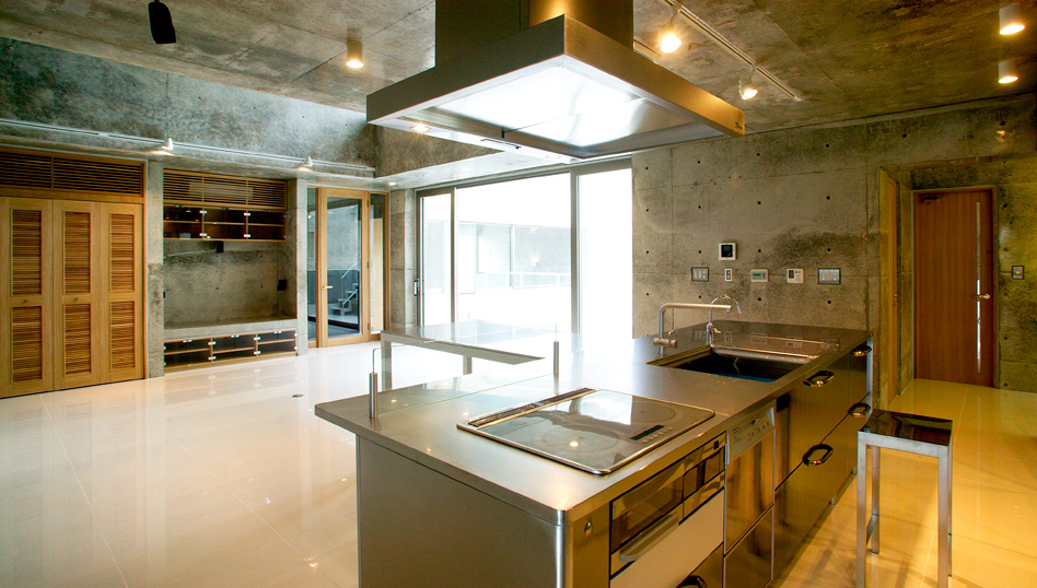 表面的な装飾は一切排除し、コンクリートやガラスの素材感と空間の大きさ、開放感、光などをデザインの根本とし、