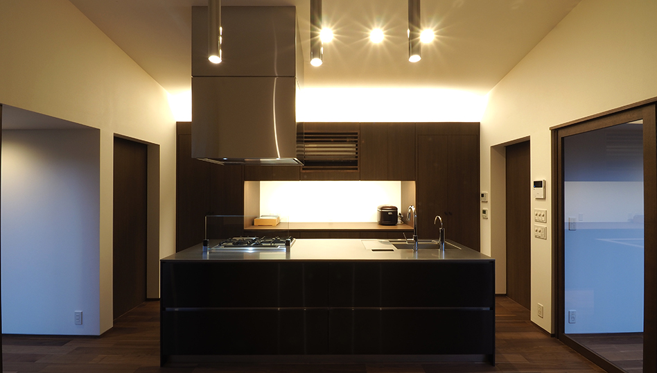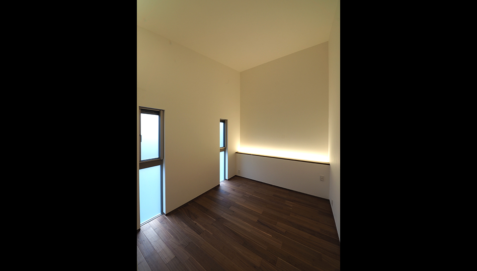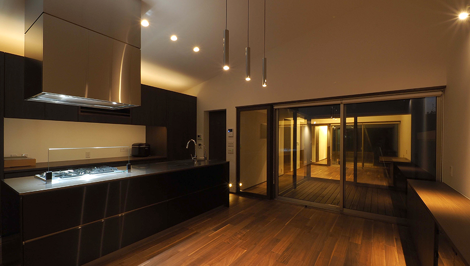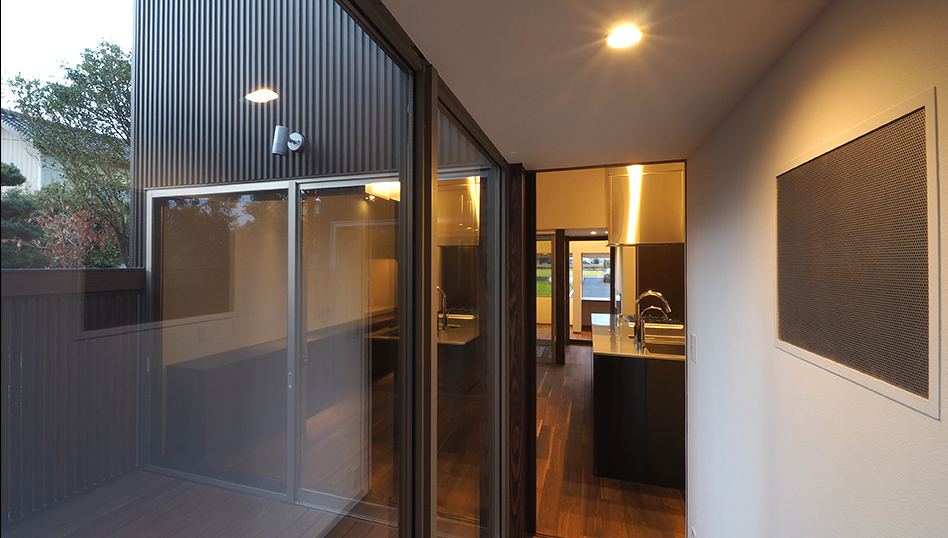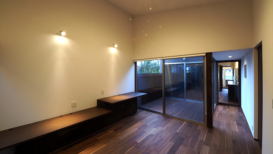 各居室を分散配置し、その間の中庭から明かりをとり、隣接する両親の家との適度な距離感で生活できる家。